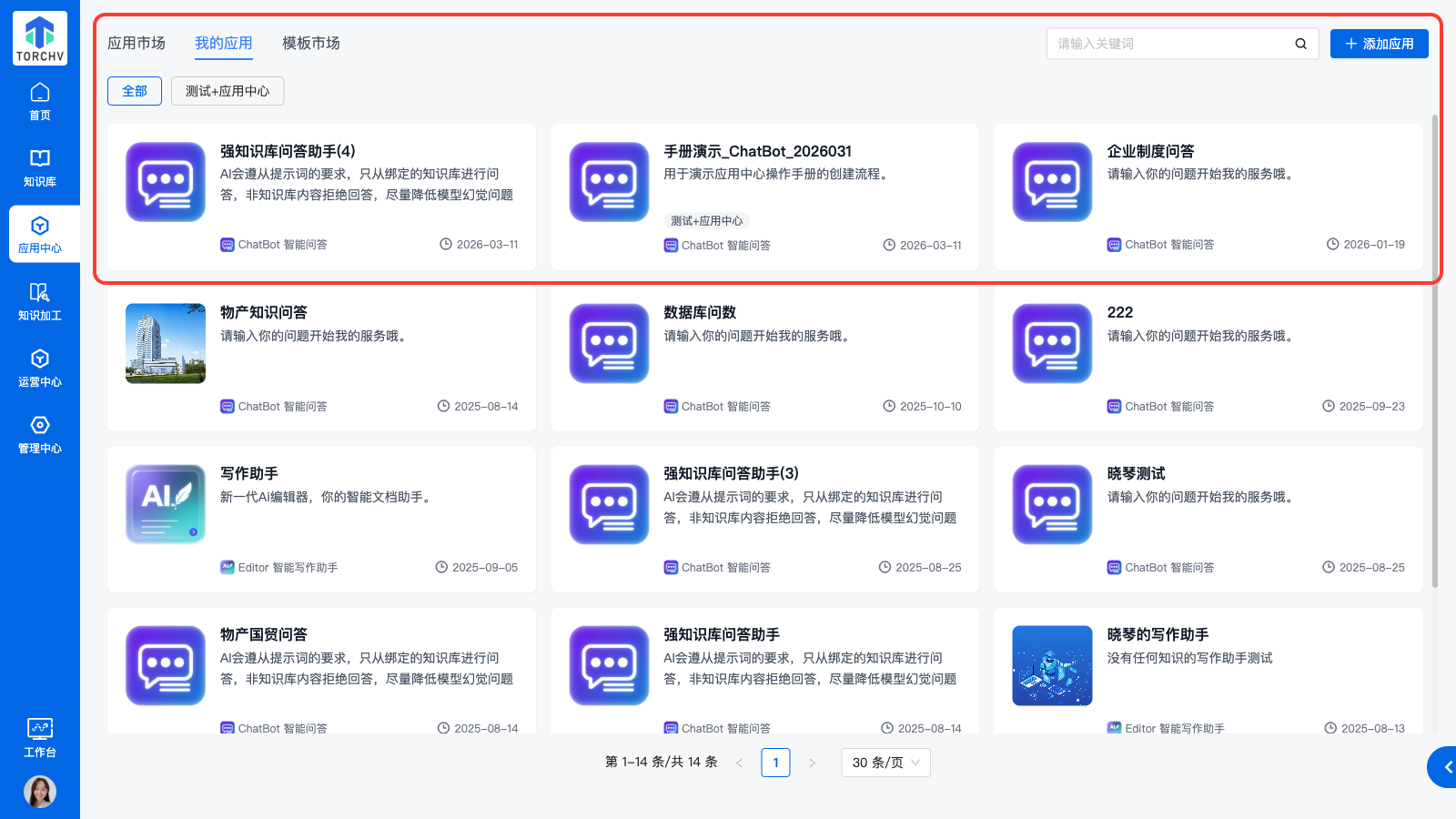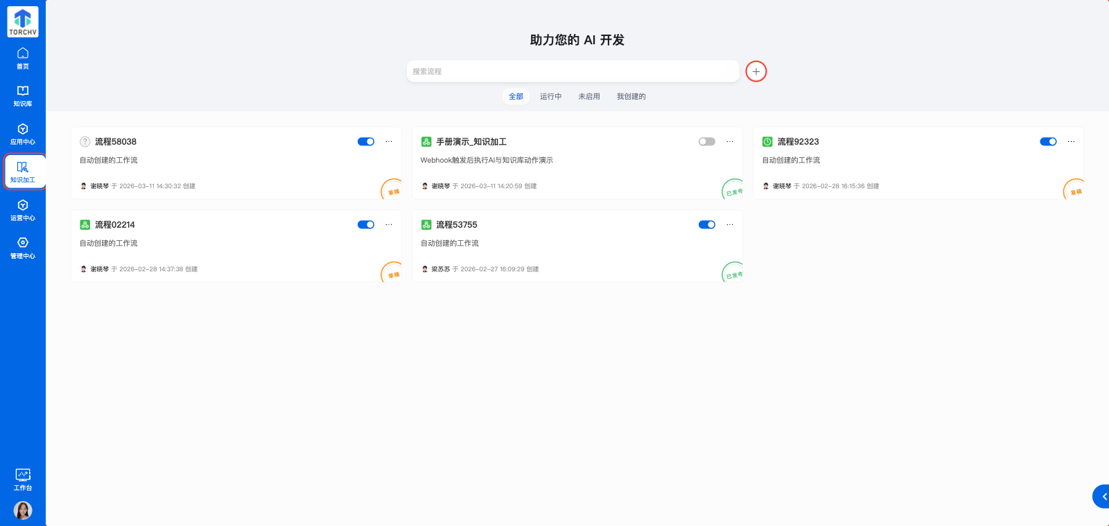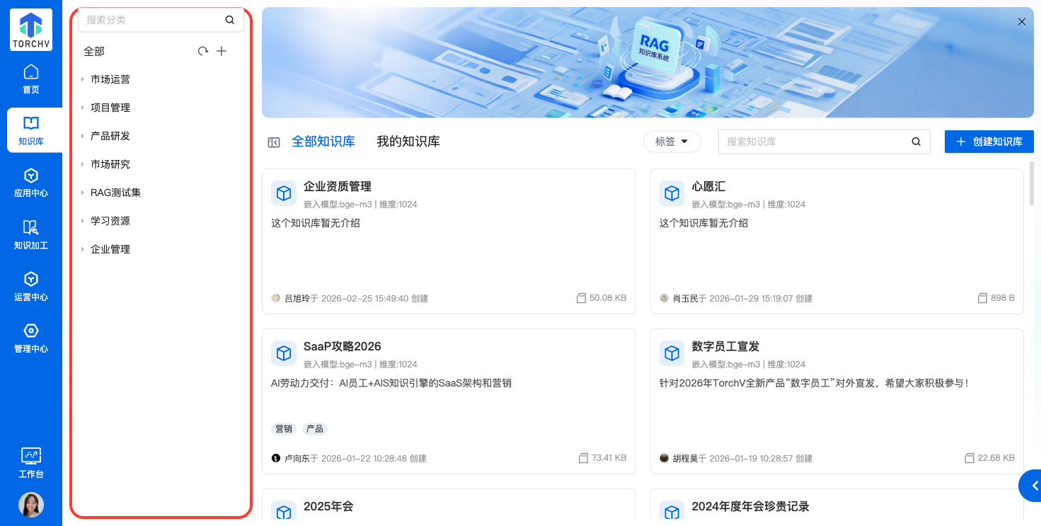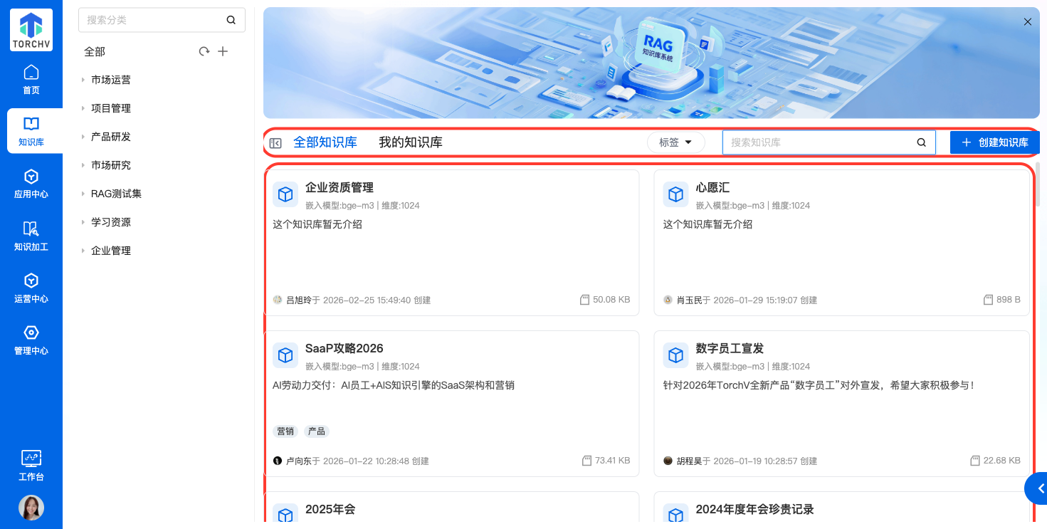 - 功能特点:首页聚合了常用入口与动态信息,适合作为日常使用的总览页;卡片类入口点击后会直接跳转到对应知识库或应用。