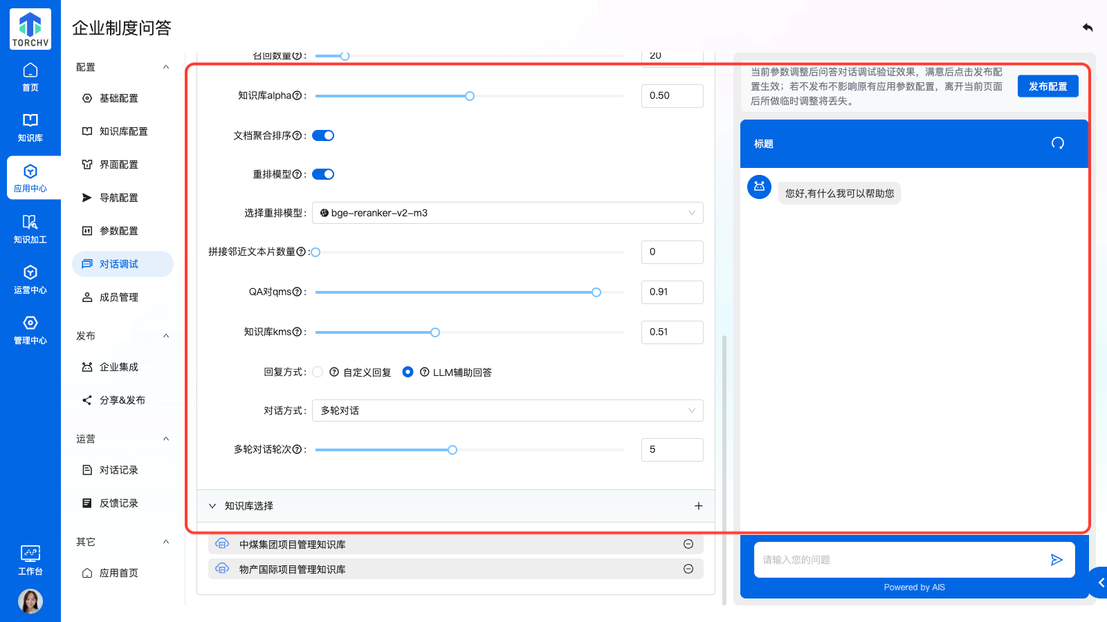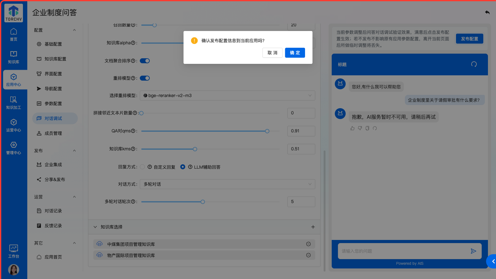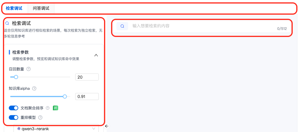 功能特点:入口固定在页面右侧浮动工具栏中,便于在首页任意位置快速发起检索;适合跨知识库进行统一问答和内容搜索。