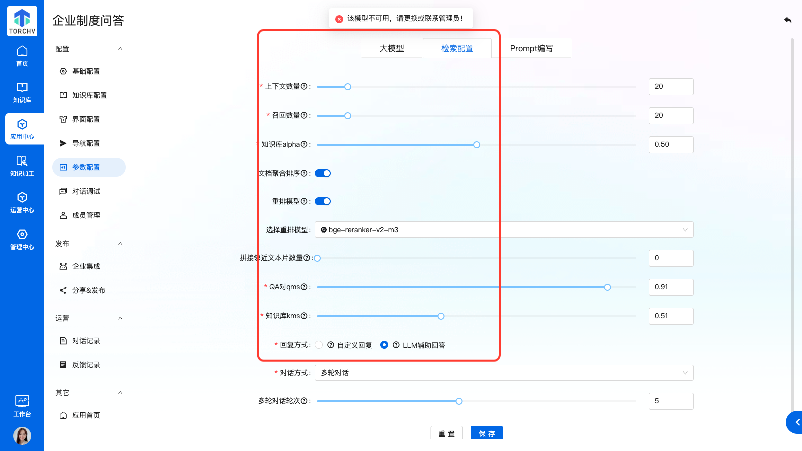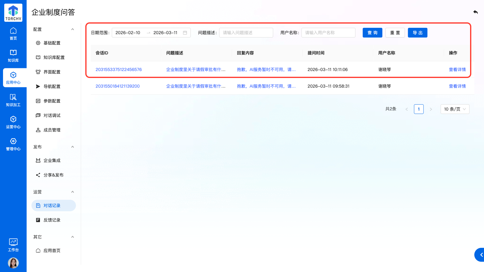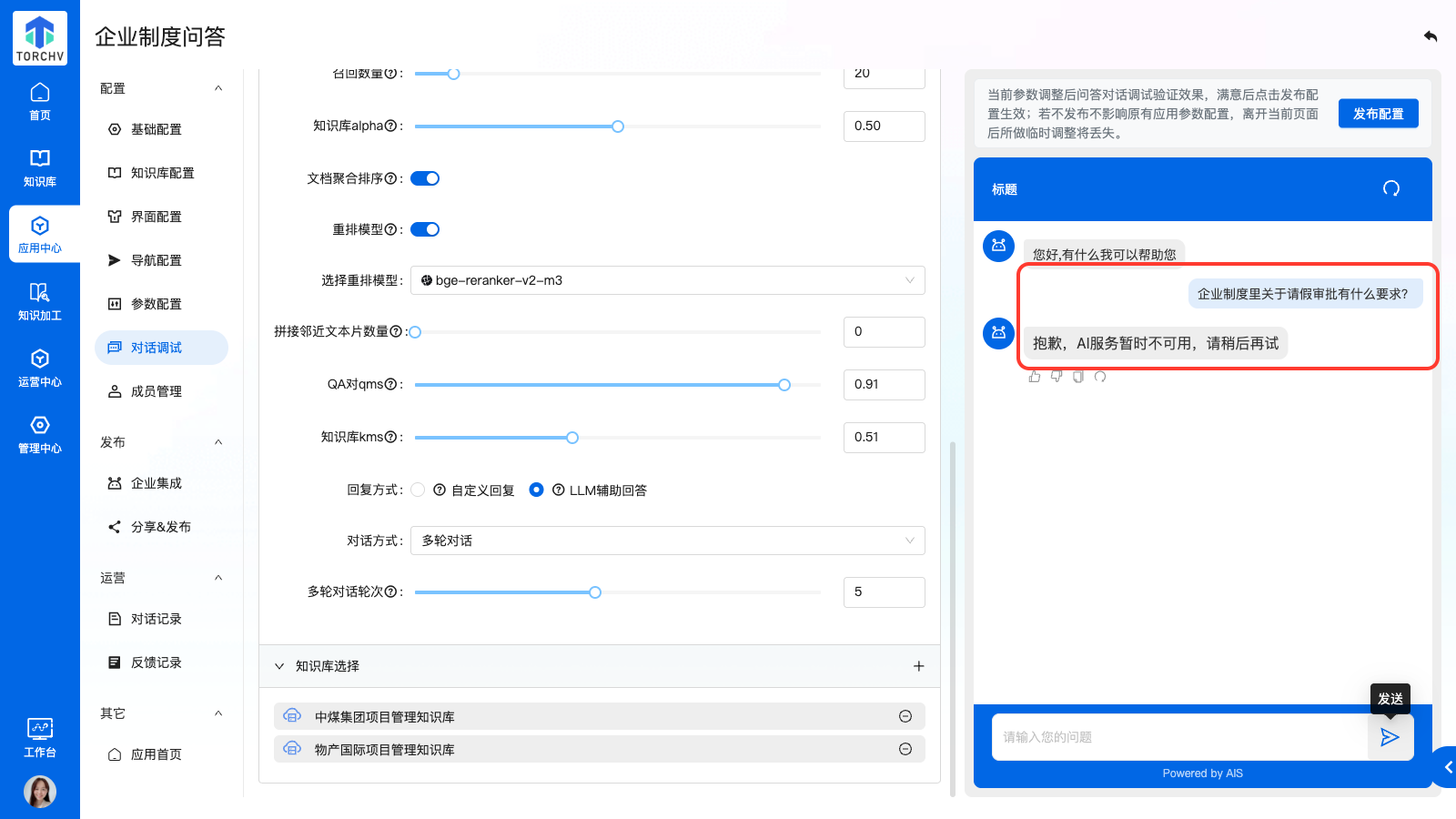功能特点:入口固定在页面右侧浮动工具栏中,便于在首页任意位置快速发起检索;适合跨知识库进行统一问答和内容搜索。