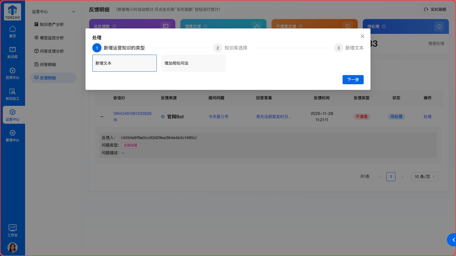 - 功能说明:通过首页右下角浮动工具栏打开问题反馈入口,跳转到外部反馈表单提交系统问题。