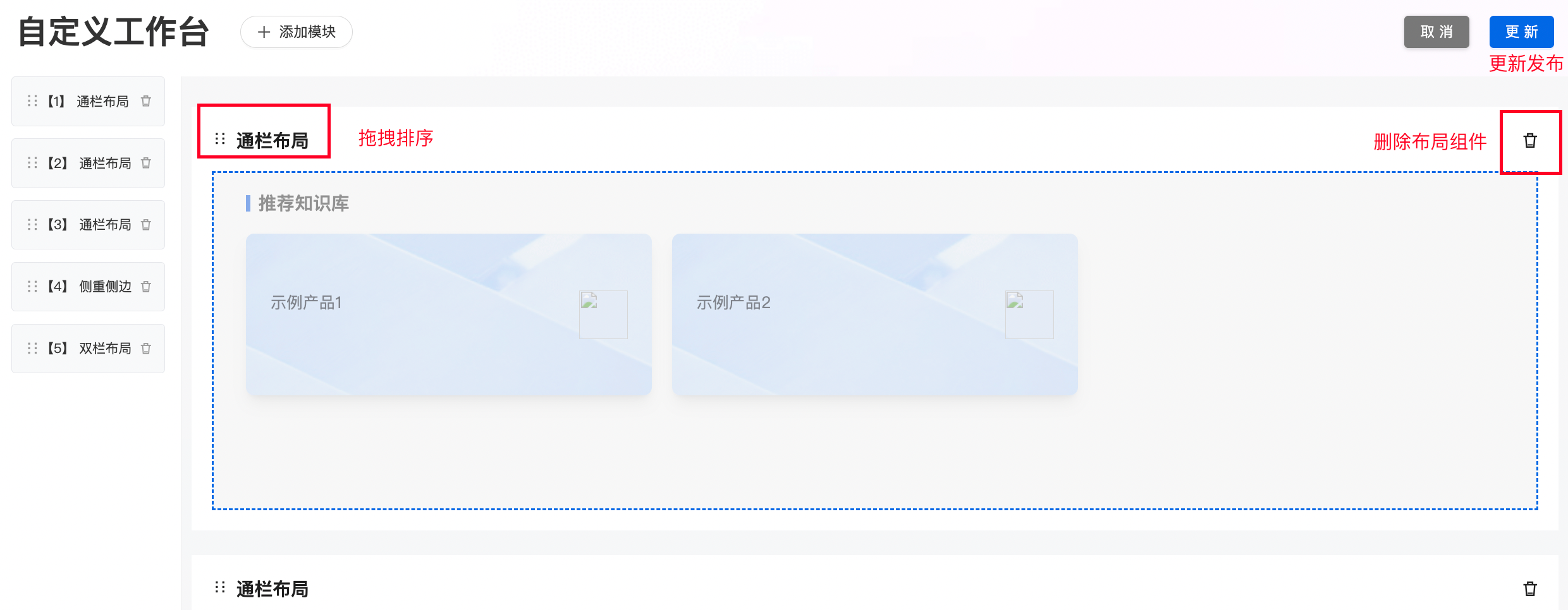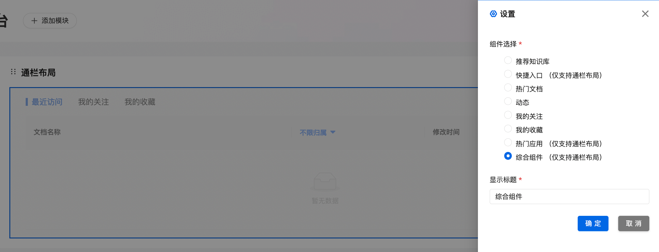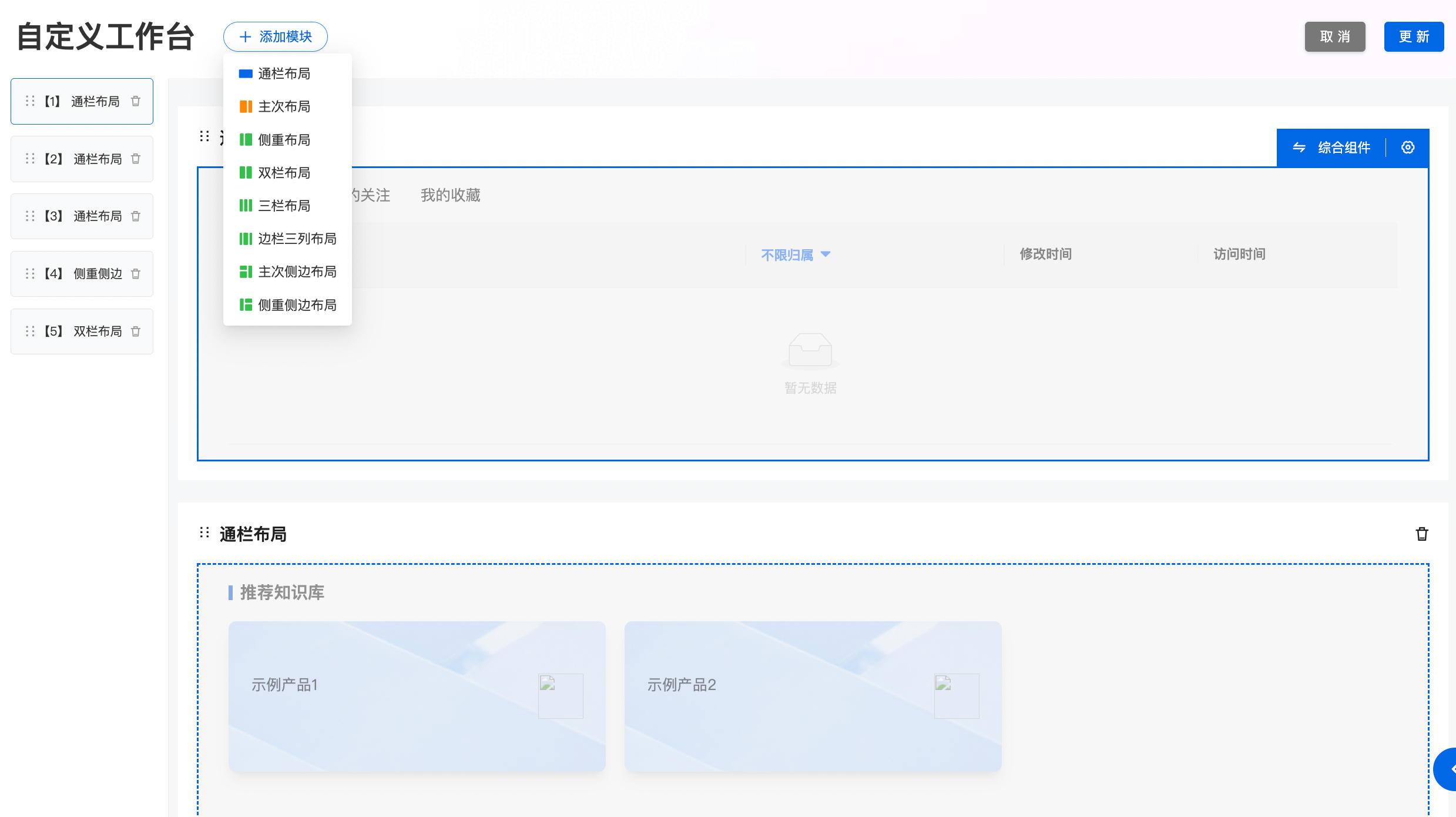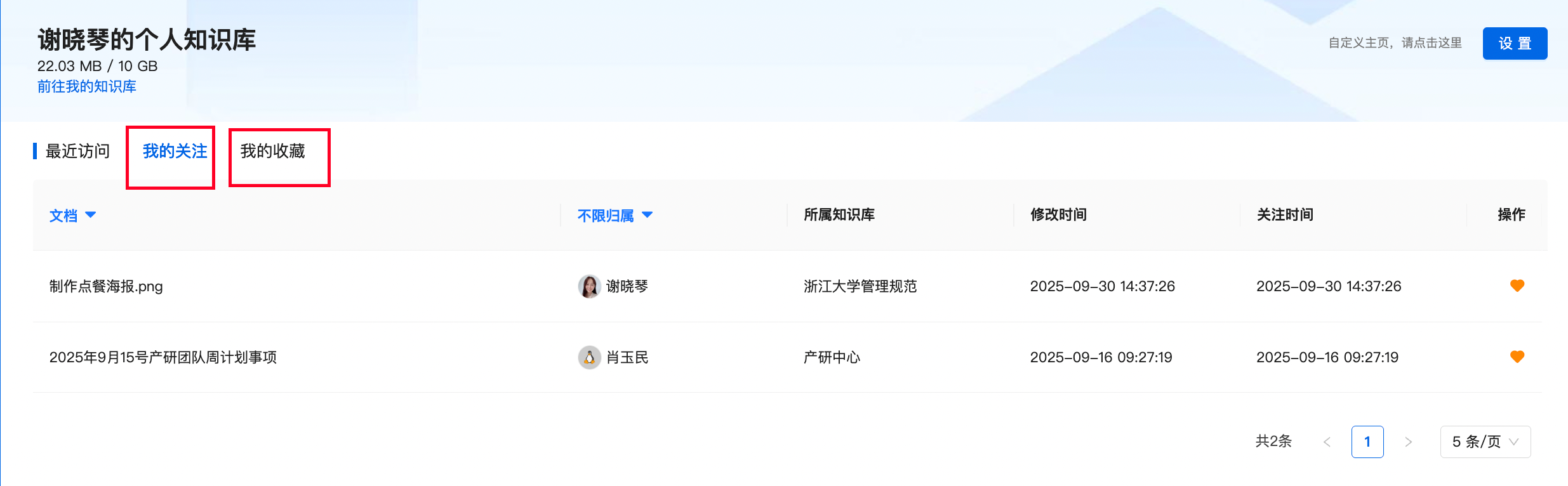 - 功能说明:查看工作台首页中的主要内容分区、个人知识库信息和页面设置入口。